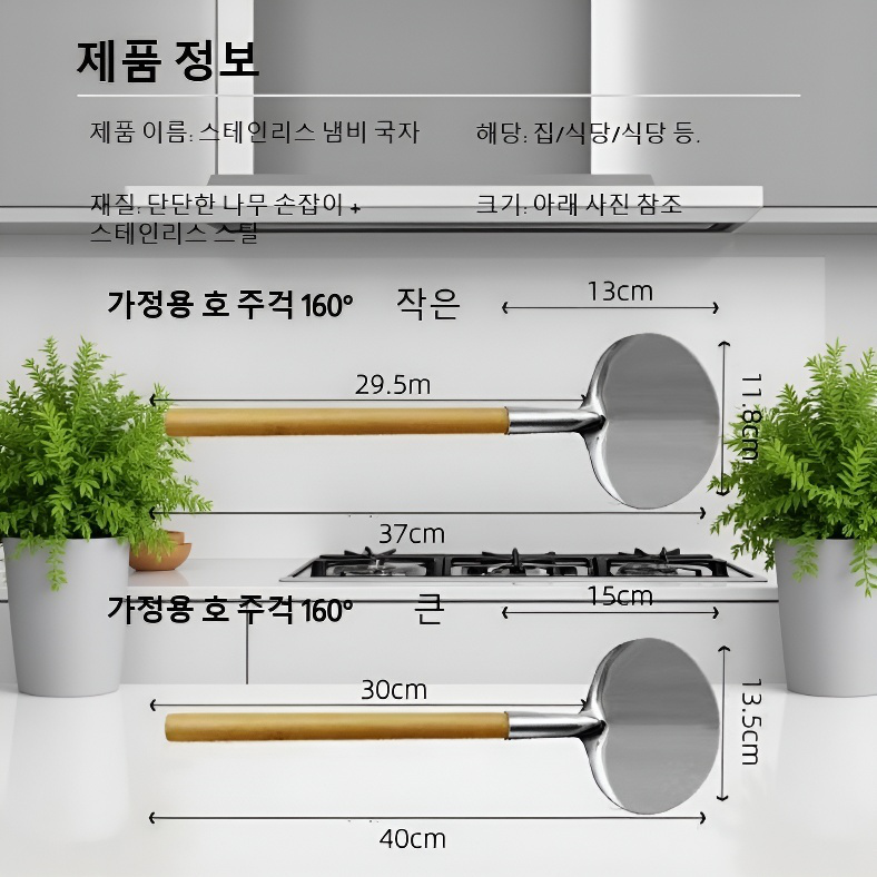 【뒤집개와 국자 일체형】원형 스테인리스 논스틱 프라이팬 주걱
